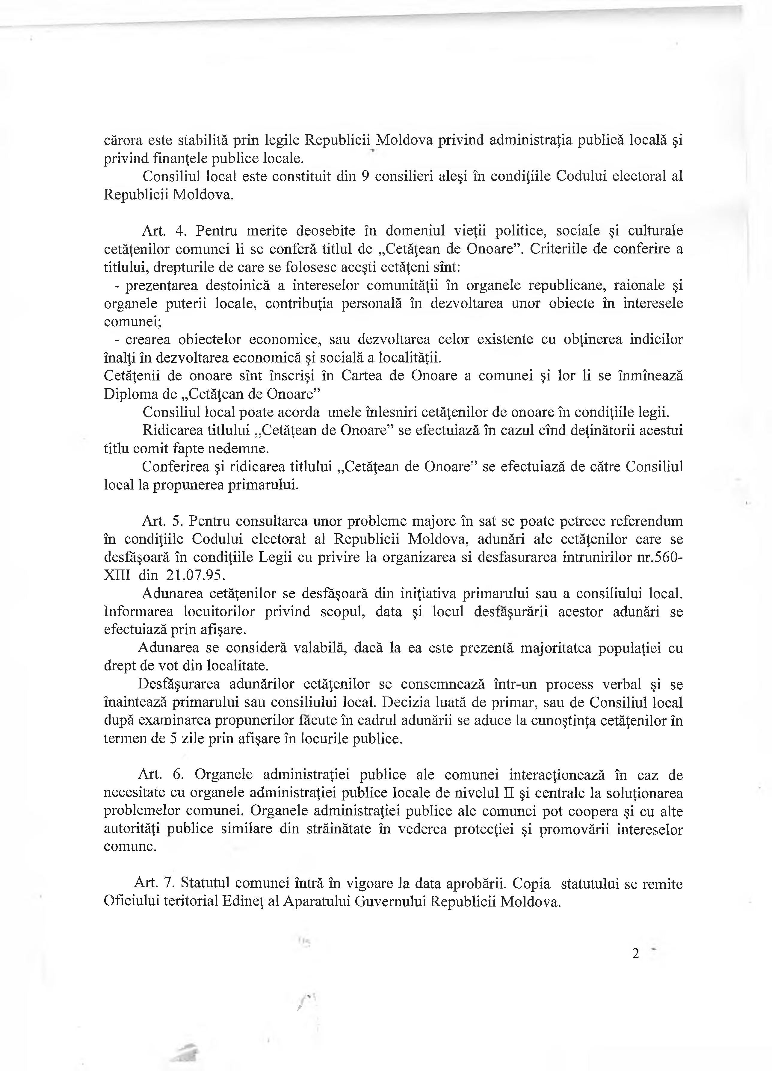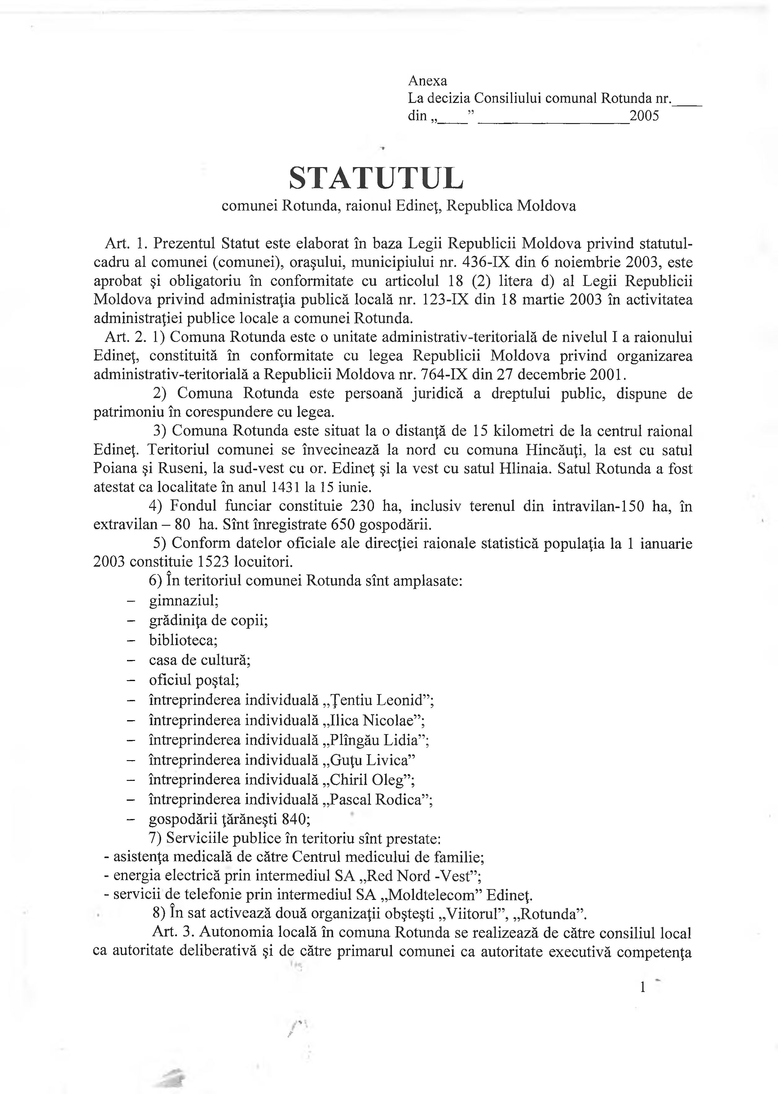 Statutul localității